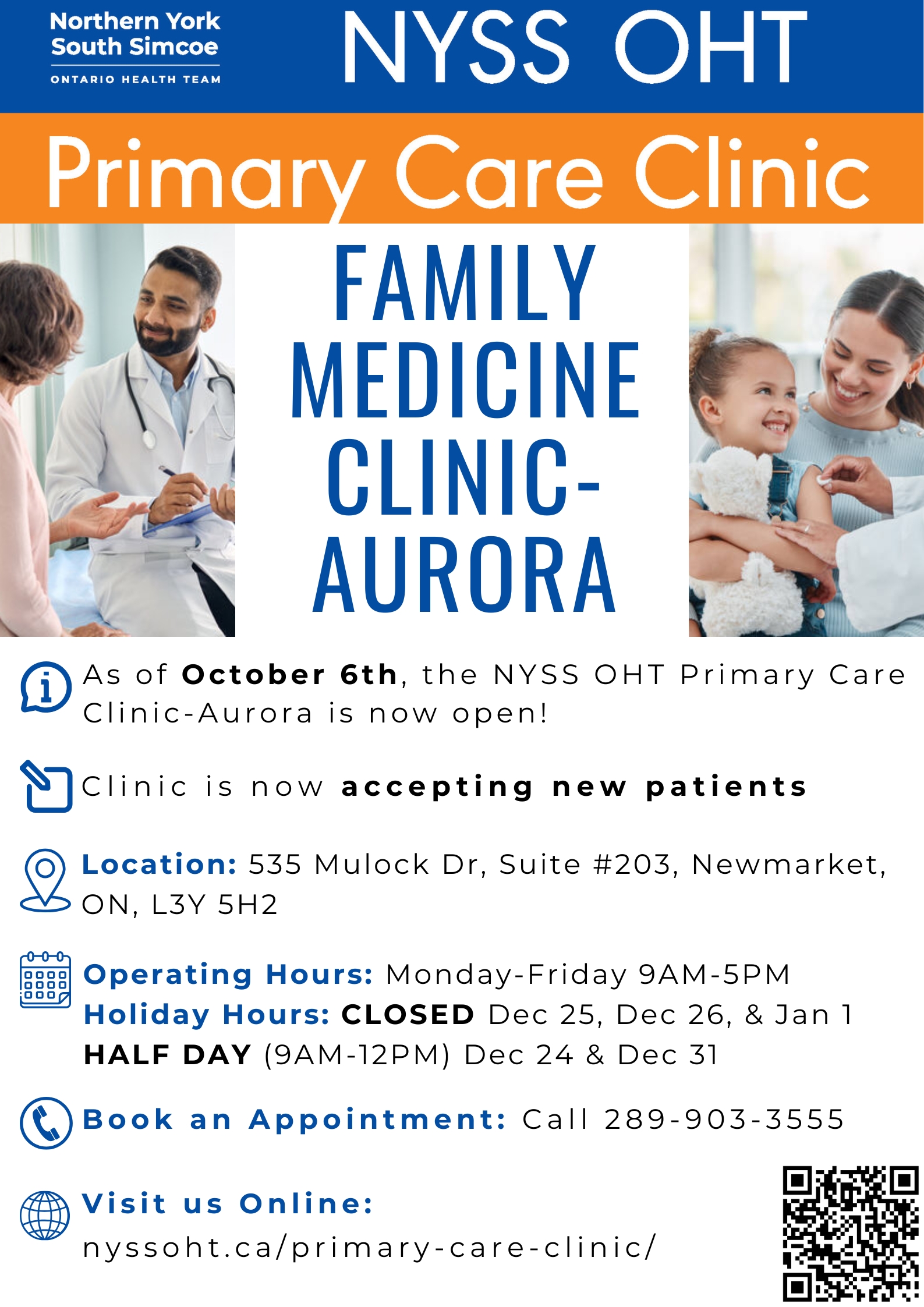 Description: As of October 6th, the newly announced Family Medicine Clinic-Aurora is now open and booking appointments.